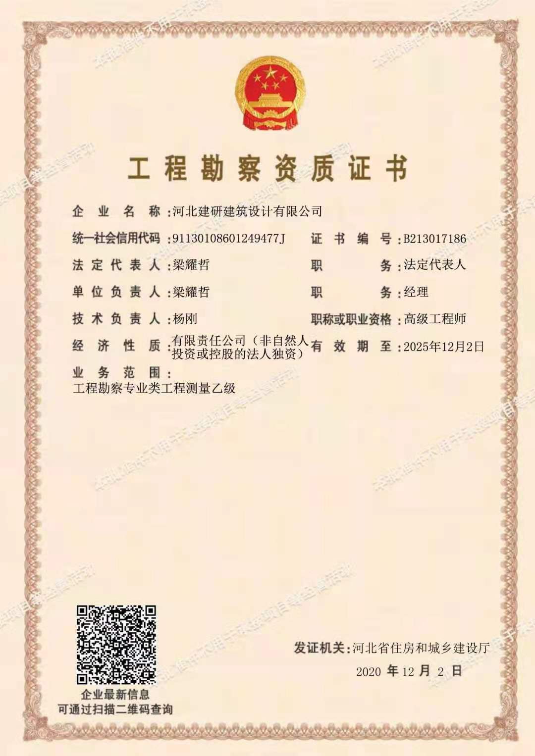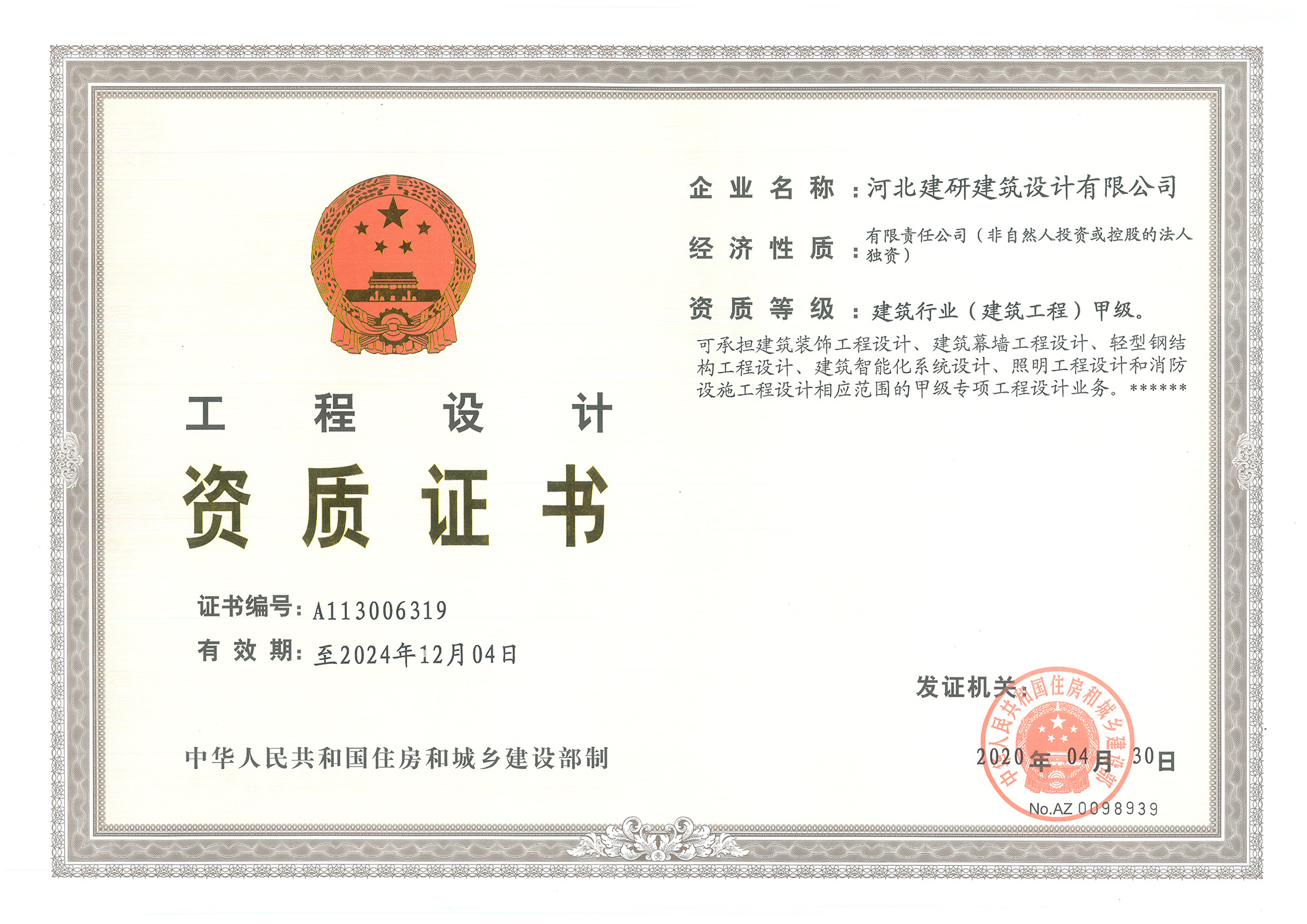 北京恒大京南半島項目F54#樓(祖沖之古鎮(zhèn)三期Ⅳ區(qū)F54#樓)勘察工程,被定為2020年河北省工程勘察設(shè)計項目叁等成果。(證書編號:2020-3-30)由河北省工程勘察設(shè)計咨詢協(xié)會頒發(fā)。